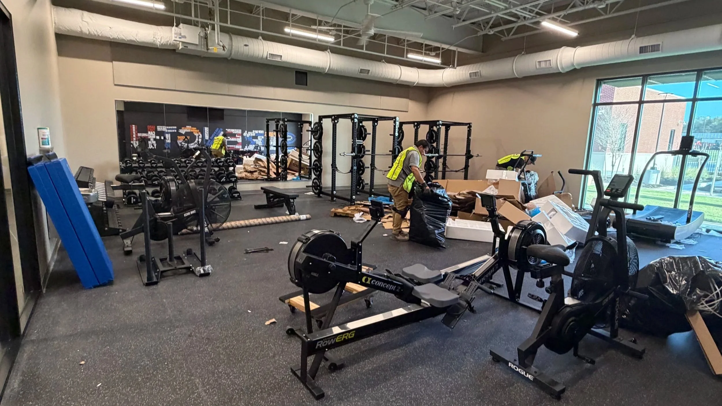 Gym mirror installation, rubber flooring solutions.